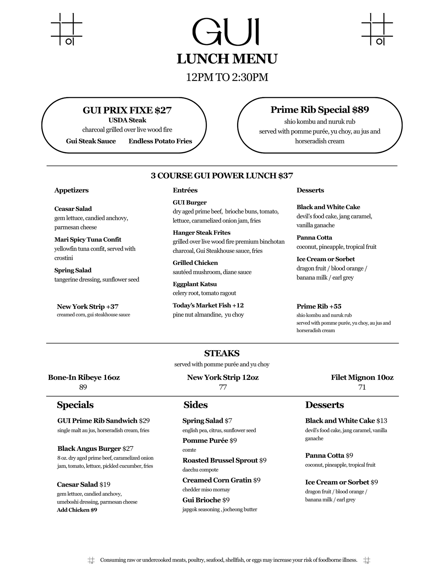 Monday: ( L) 12-2:30pm / Dinner: 4pm-10pm